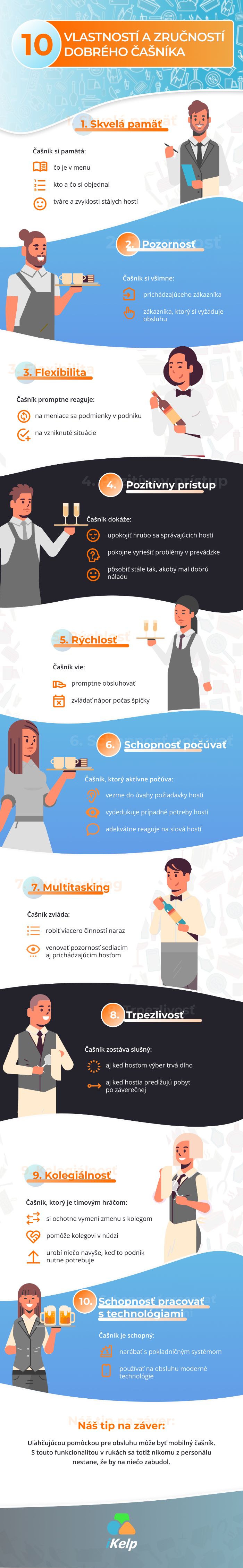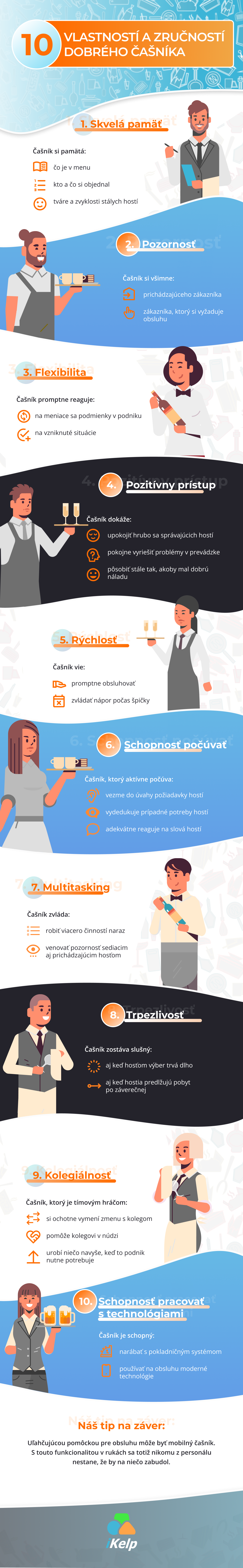 Dobrý čašník znamená pre reštauráciu či kaviareň polovicu úspechu. Svojím príjemným vystupovaním a správnym pracovným nasadením totiž dokáže aktívne prispievať k bezproblémovému chodu a napredovaniu podniku. Lenže vlastností a zručností, ktoré by mali zdobiť dobrého čašníka, je podstatne viac. Tie najdôležitejšie zhŕňame v infografike.