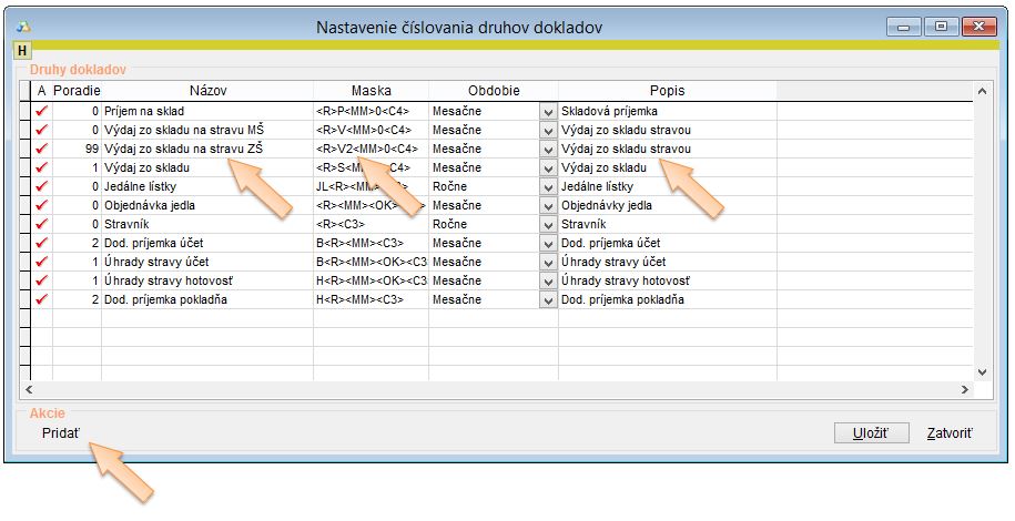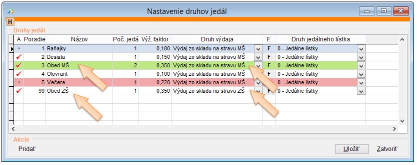 9. Zmeny potvrdíte kliknutím na tlačidlo Uložiť. (Ďalšie informácie o Druhoch jedál sa dozviete v článku Druhy jedál.)