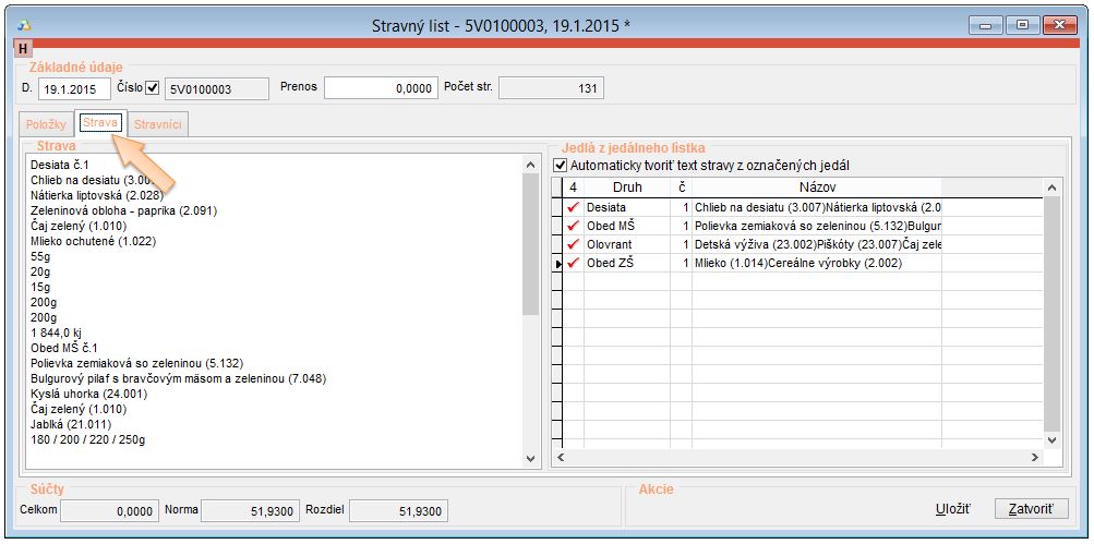 3. Vytvorenie stravného listu potvrdíte kliknutím na tlačidlo Uložiť.