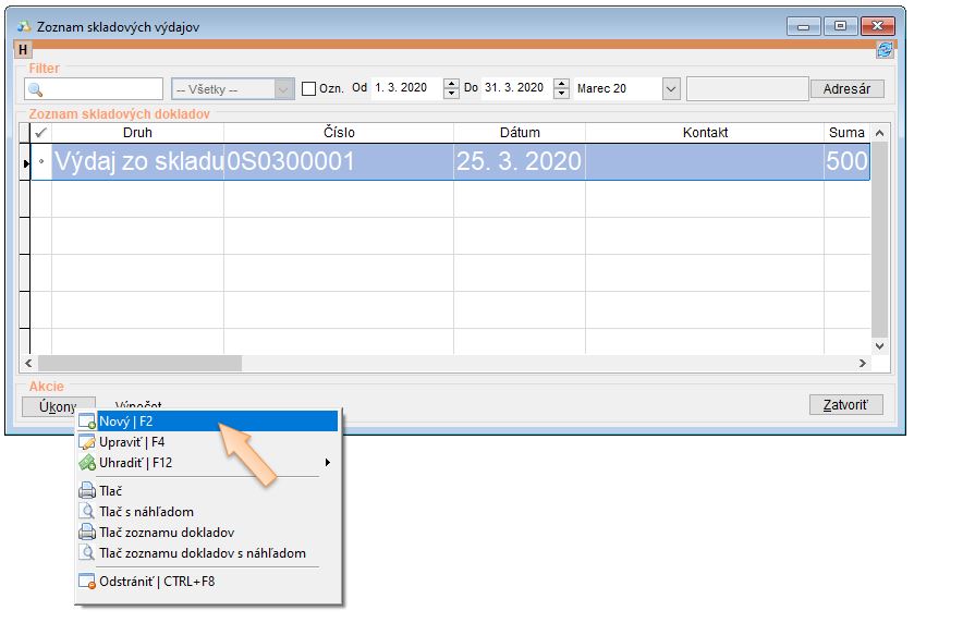 - Kliknite na záznam / výdajku v zozname pravým tlačidlom myši a vyberte možnosť Tlač.