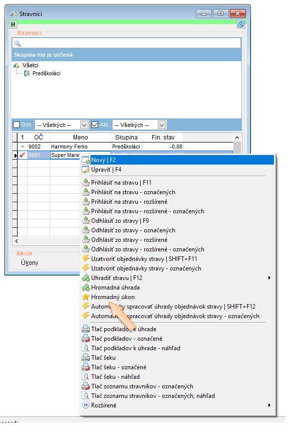 3. Vyberte zo zoznamu možnosť Hromadný úkon.