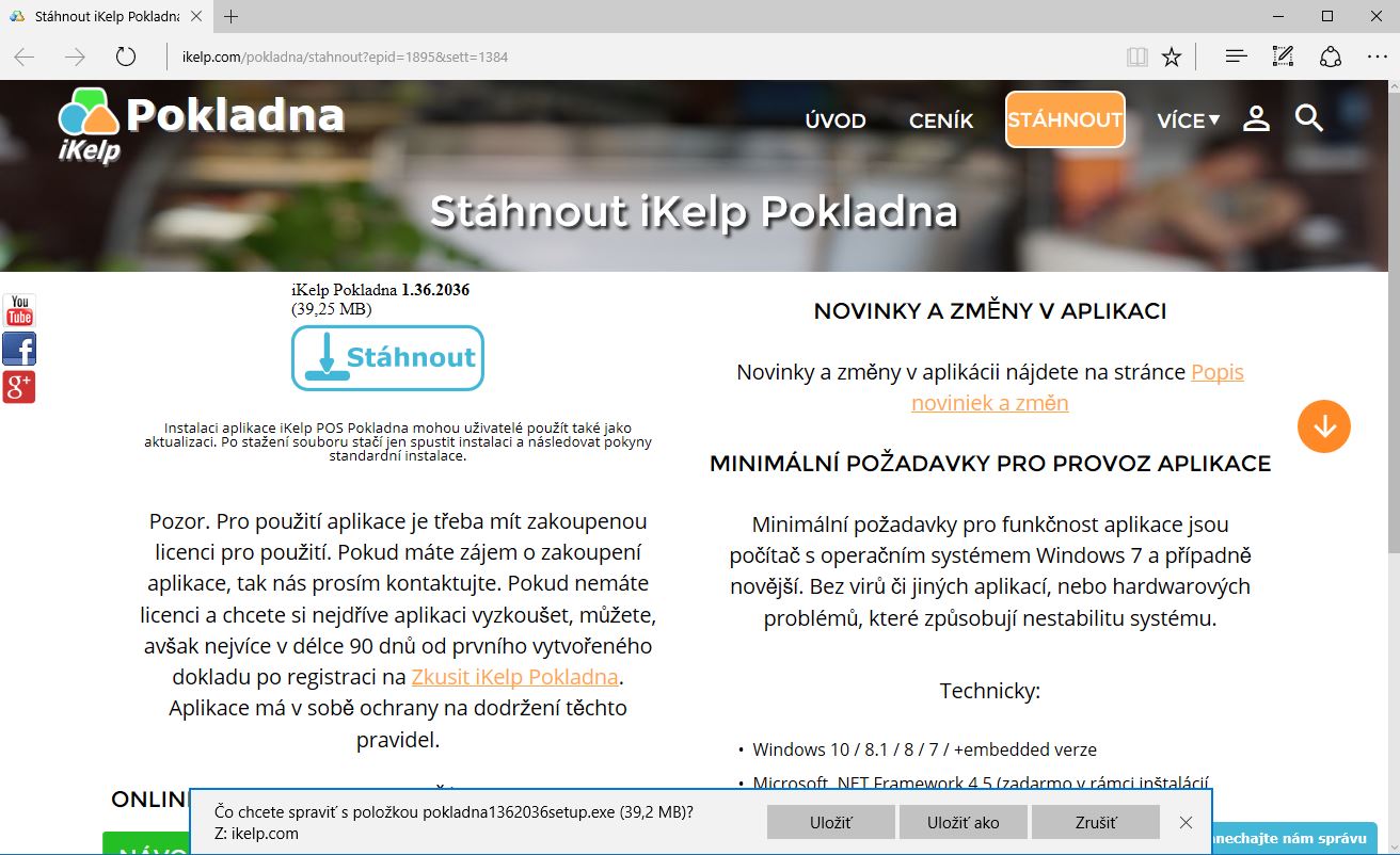 Instalaci aplikace je možné stáhnout z internetové stránky http://www.ikelp.com/pokladna nebo kliknutím na tento odkaz Stáhnout iKelp Pokladna.