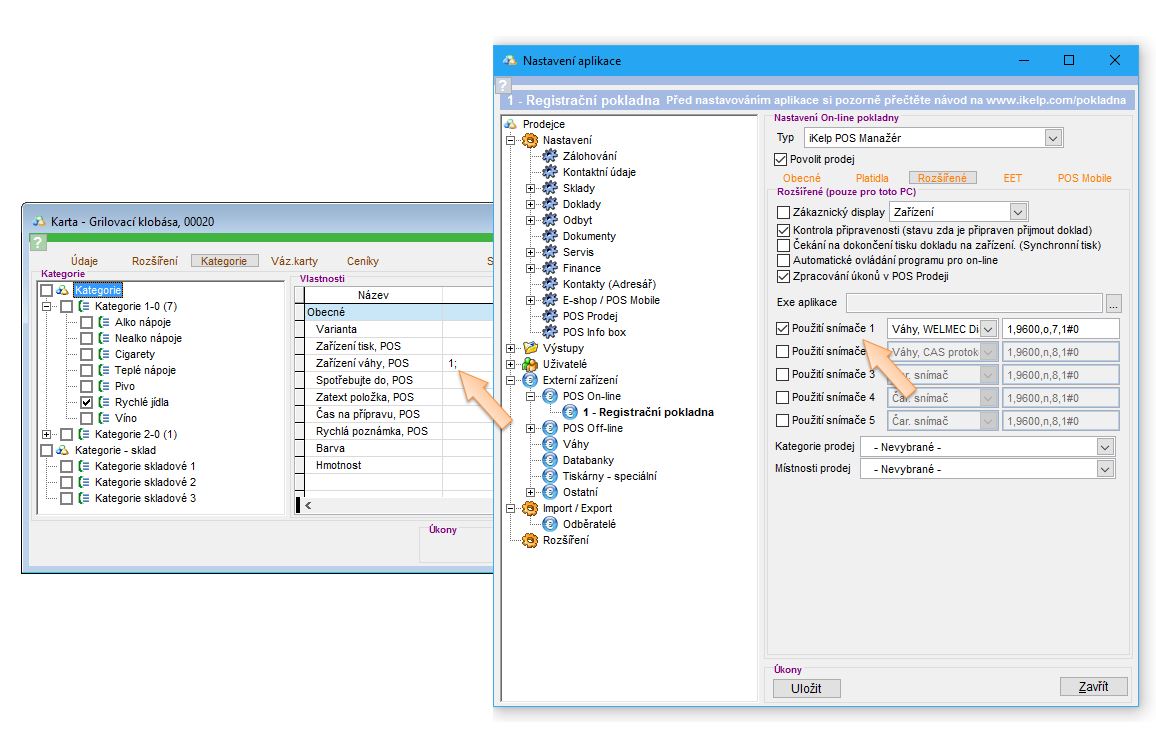 • Aktivujte nastavení "Použití On-line váh při prodeji".