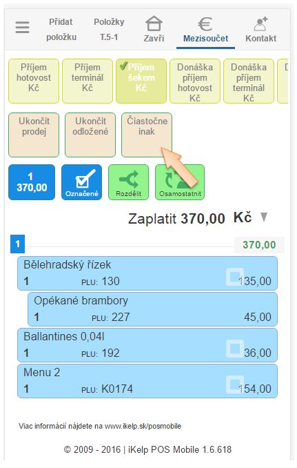 Částkové - kombinované platby v iKelp POS Mobile