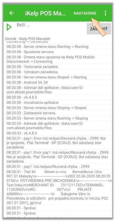 3. IP adresa - zajte adresu zariadenie ktoú má pridelené v rámci lokálnej siete. (Odporúčame, aby zariadenie malo nastavenú pevnú IP adresu, aby pri reštarte terminálu, alebo iného sieťového zariadenia nedošlo k zmene tejto adresy a následnému výpadku komunikácie.)