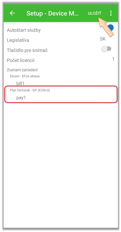 2. Krok: Pridanie zariadenia - platobného terminálu
