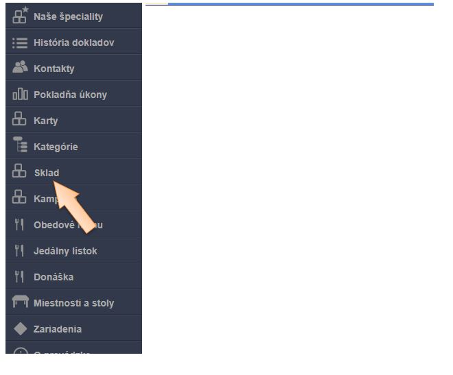 1. Kliknite na možnosť Sklad v menu aplikácie.
