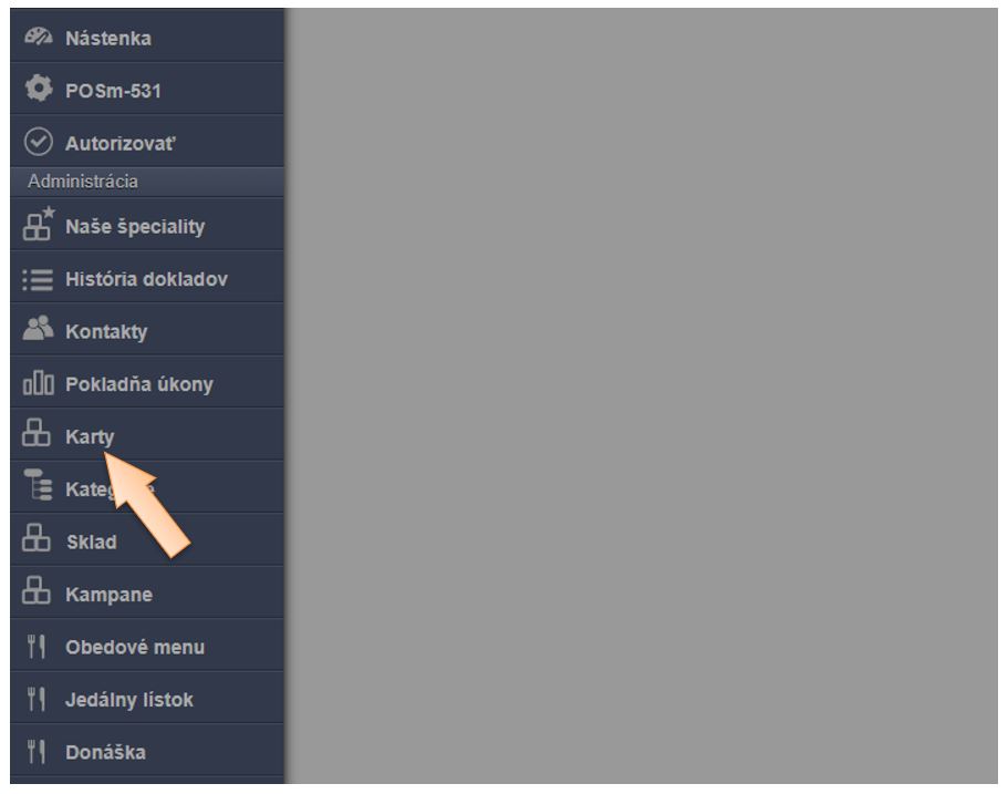 1. Kliknite na ponuku Karty v menu aplikácie, následne kliknite na Nová.