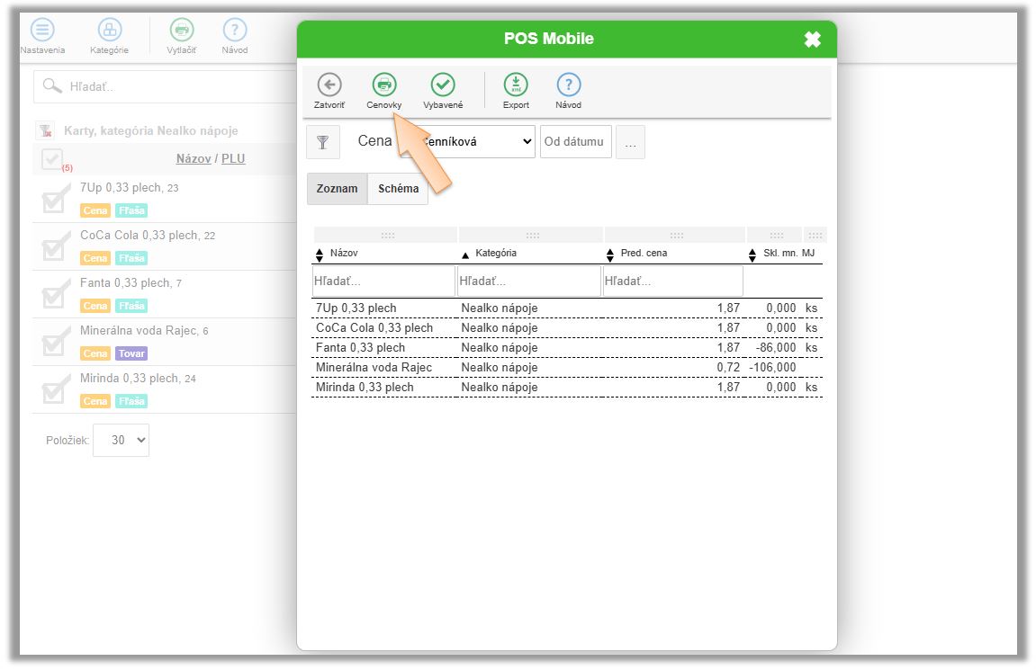 Pri tlači cenovky je možné definovať, či chcete cenovku tlačiť s bežnou predajnou cenou, alebo či chcete tlačiť cenníkovú, akciovú cenu a zobrazovať aj bežnú predajnú cenu ako prečiarknutú. Ak sa na cenovke má zobrazovať bežná predajná, aj akciová cena, je možné to nastaviť pomocou cenníkov v aplikácii.