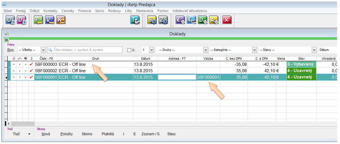 Doklady - storno (ECR OFFLine uzávierka z registračnej pokladnice)