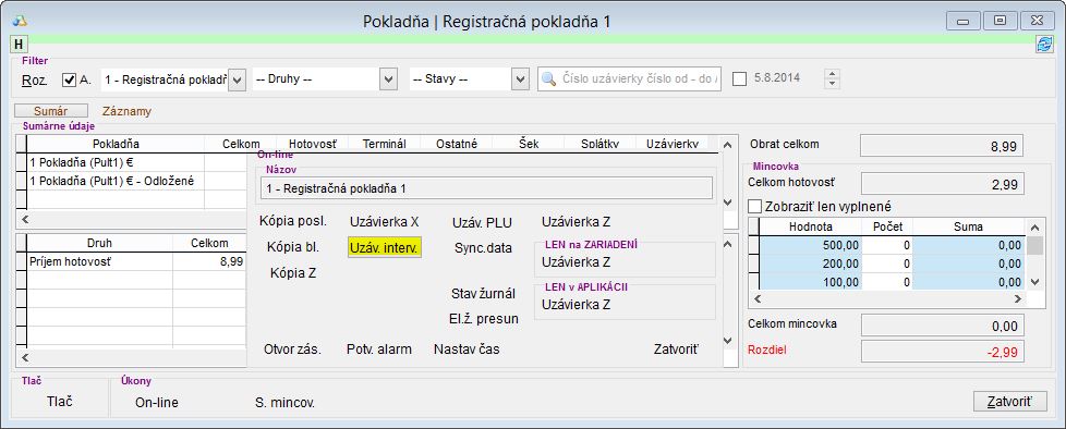 - Vyberte z ponuky možnosť Uzáv. interv. (Kliknutím ľavým tlačidlom myši vykonáte súhrnnú uzávierku, kliknutím pravým tlačidlom vykonáte podrobnú intervalovú uzávierku.)