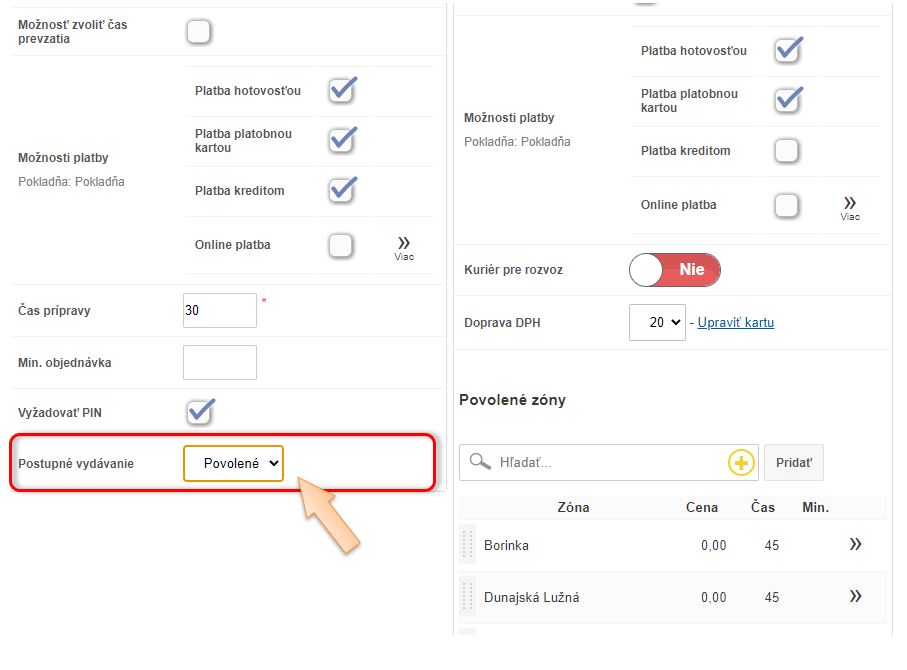 - V prípade kombinácie Zákaznícky a Kuchynský displej musí byť nadefinované a aktívne aj toto zariadenie.