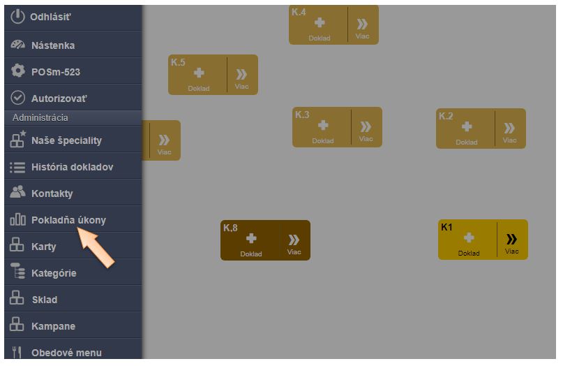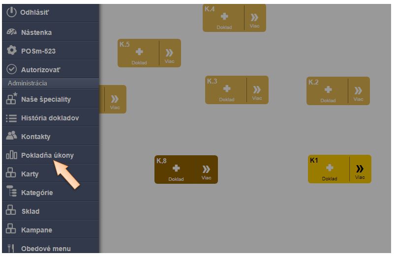 - Reporty sa generujú podľa pokladníc, takže je potrebné zvoliť pokladnicu.