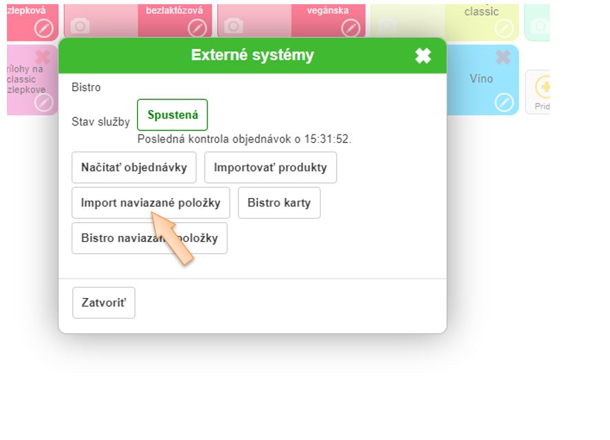 Je potrebné urobiť Importovať produkty ( to sú hlavné produkty)a Import naviazané položky (to sú naviazané položky ako prílohy na pizzu alebo k jedlu, omáčky a pod.)