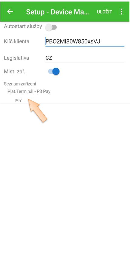 - Zadajte v častii Kódy názov (kód) zariadenia. (Kód zariadenia musí byť zhodný s kódom zariadenia z POS Mobile. Odporúčame ponechať kód pay, ak už tento nie je použitý na inom zariadení.)