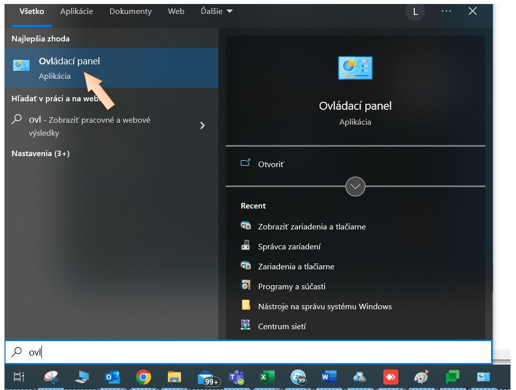 1. Kliknite na ikonu Štart a otvorte Ovládací panel. (Začnite písať Ovl.)