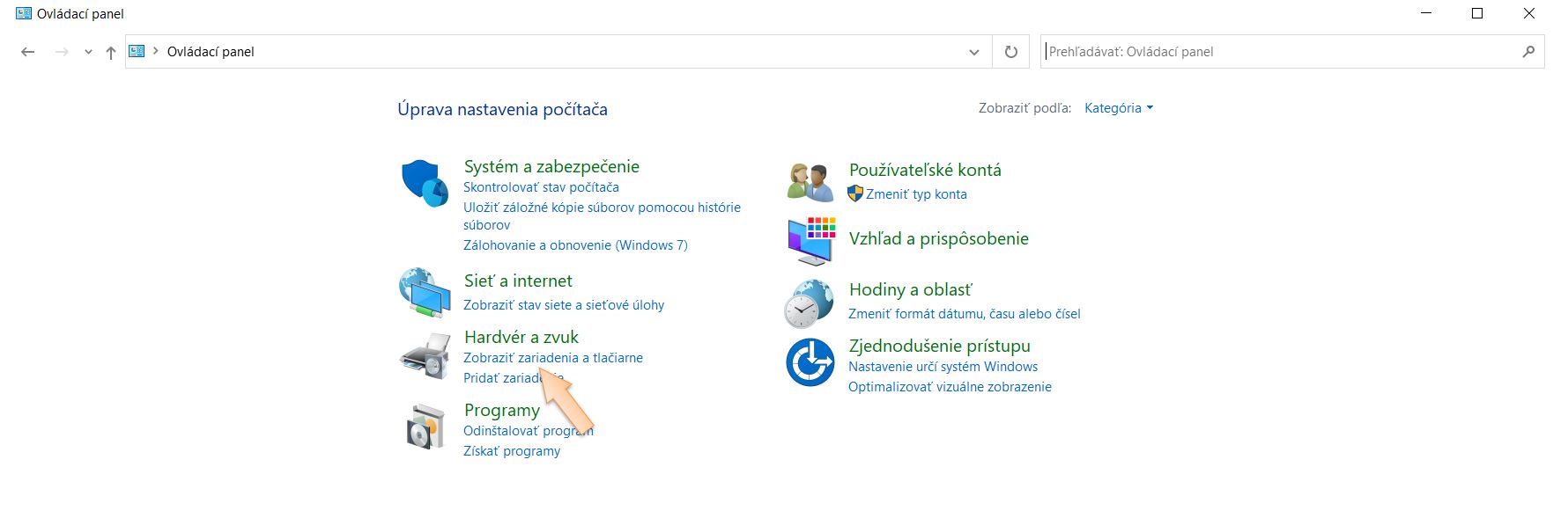 2. Prejdite na ponuku Zobraziť zariadenia a tlačiarne.