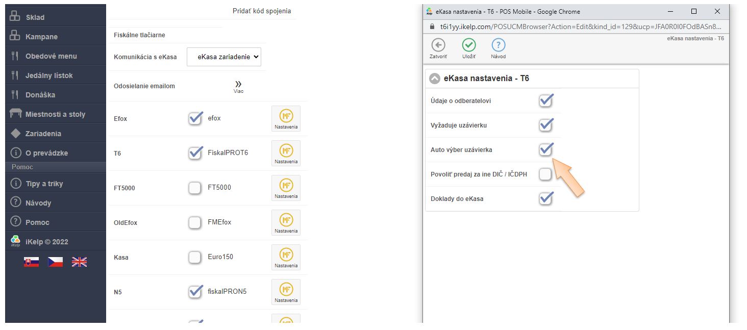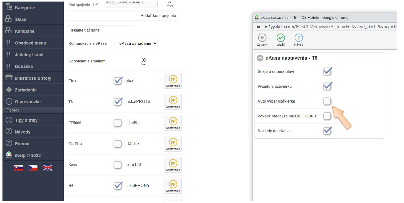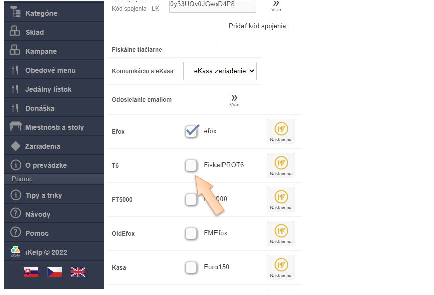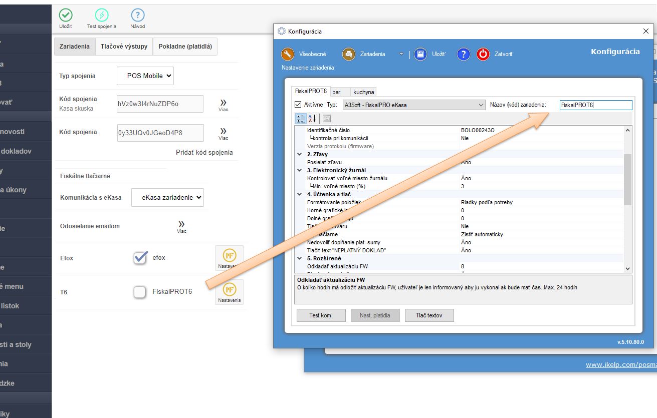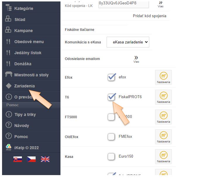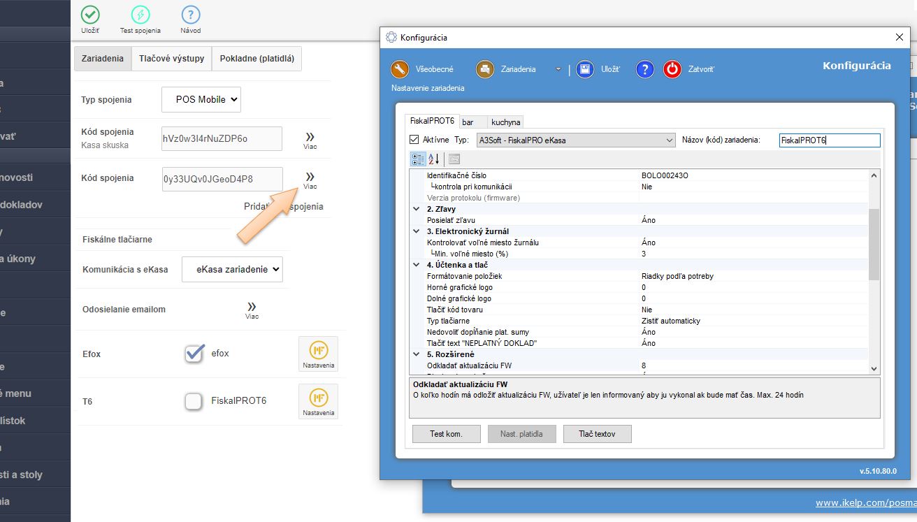 4. Po aktivovaní ďalších eKasa zariadení má každé zariadenie pridelený kód (identifikátor), ktorý treba mať rovnako nadefinovaný aj v aplikácii iKelp POS Manažér.
